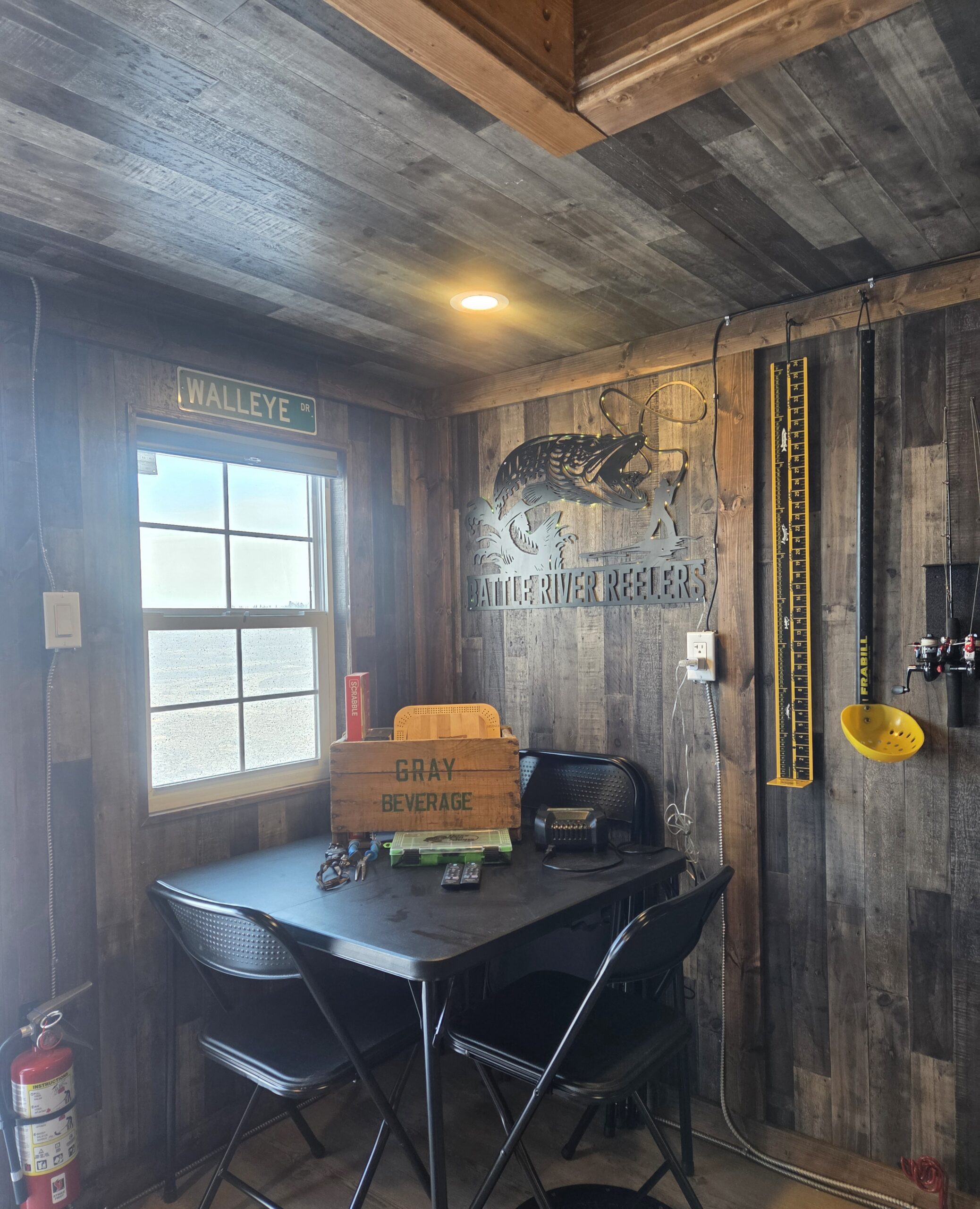 There is a heated washroom facility right by the shack and let’s not forgot about the wood-fired cedar sauna. Make sure to enjoy a hot chocolate or have a warm drink around our custom outdoor fire pits! For the ultimate fishing and relaxing experience, the JackPot is all you need for fishing solo, with a buddy, or up to (6) friends!